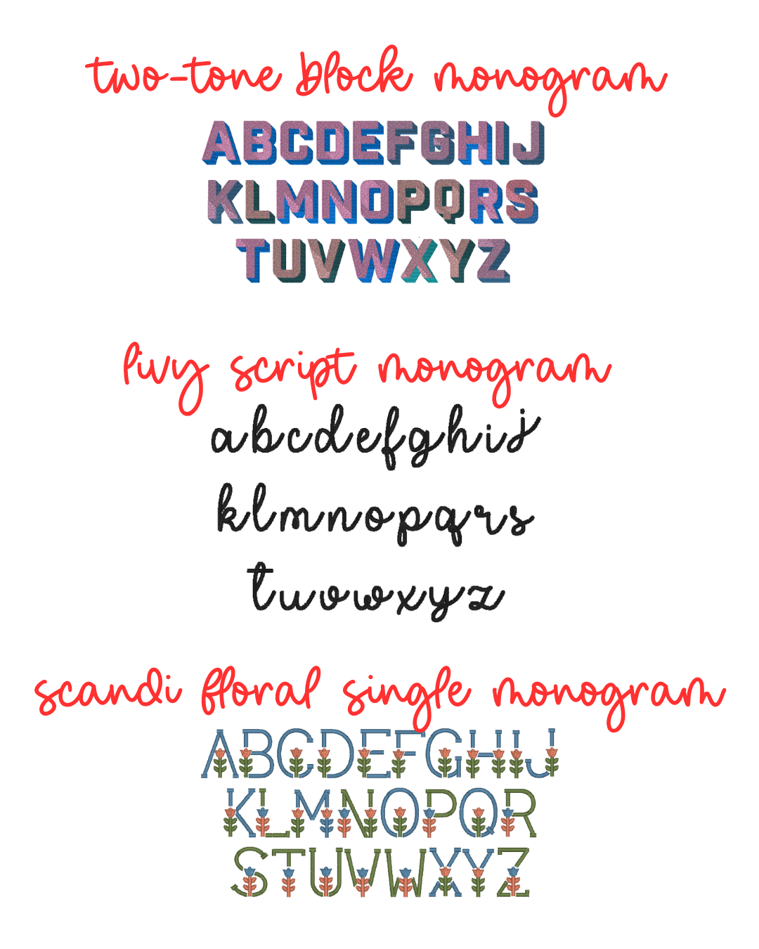 Choose from 3 monogram options. Thread color will be chosen at random for a fun surprise! Can't decide which font? Let us choose for you! Just select the "surprise me" option under font choice!